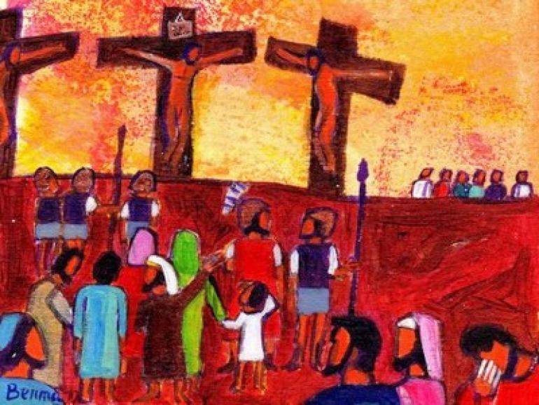 Ainsi, aujourd’hui s’ouvre, pour ce malfaiteur et pour nous, la révélation totale de Dieu, Dieu amour. Son règne, son amour, est à hauteur d’homme, d’homme crucifié, à hauteur aussi de la soif de l’homme qui le regarde.